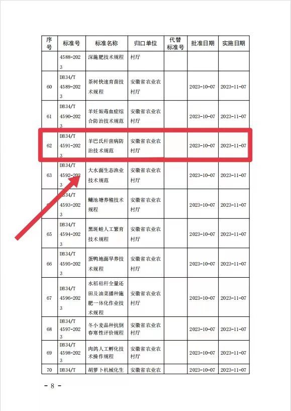 安徽安欣(涡阳)牧业发展有限公司依据《安徽省市场监督管理局关于申报 2021年度安徽省地方标准制(修)订计划项目的通知》并按照其中的要求,由安欣牧业专家委员会相关专家携安欣牧业研究院兽医实验室共同制订并申报两项地方标准——《DB34/T4590-2023羊妊娠毒血症综合防治技术规范》和《DB34/T4591-2023羊巴氏杆菌病防治技术规范》获批并发布。